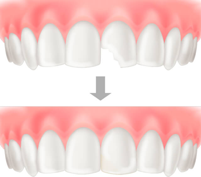 レジンというプラスチック素材で、歯の形を修復したり、歯のない部分を補ったりする治療です。短時間の修復で、天然の歯の色を再現できるため、取り組みやすい審美治療といえます。また、小さなむし歯を削った後に詰めれば、治療跡がわからない程自然な修復が可能です。